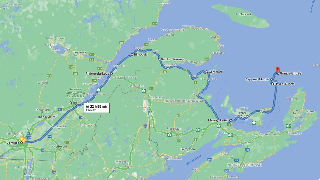 Murray Beach NB – Souris Île-du- Prince-Édouard (IPE) – Traversée jusqu’à Cap-aux-Meules (Québec), puis arrivée au camping du Gros-Cap, à l’Étang-du-Nord.