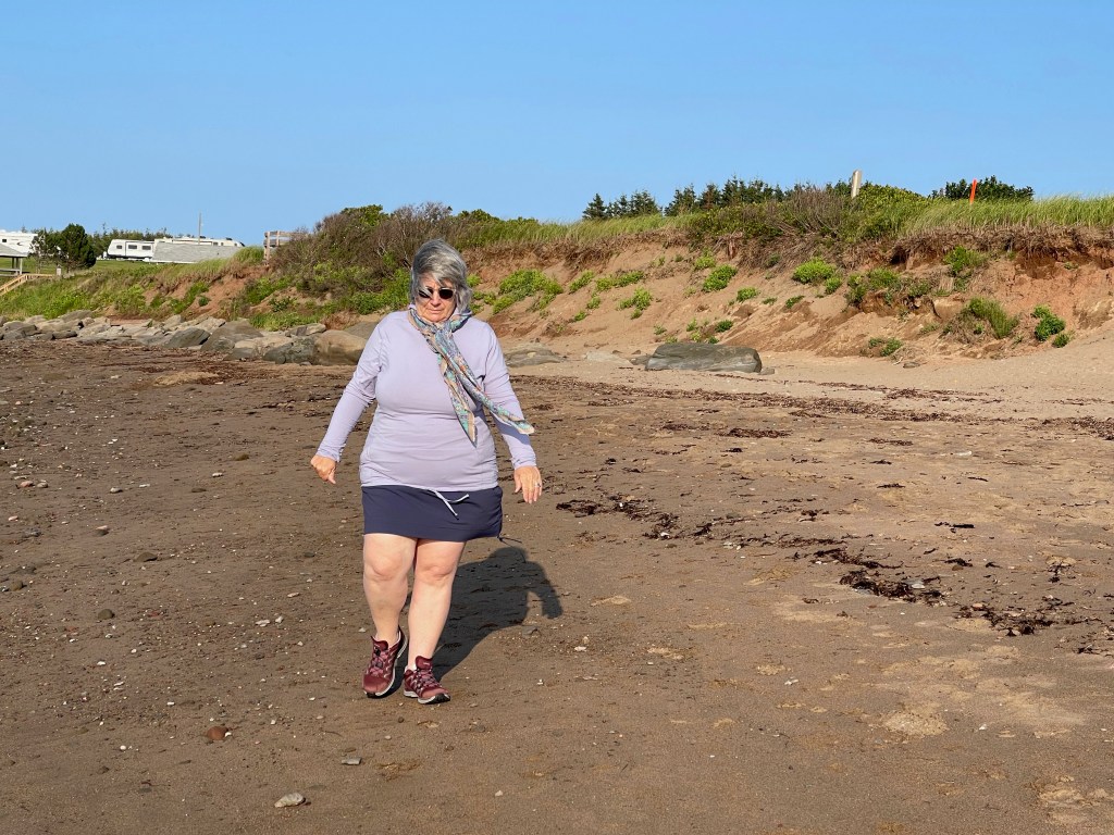 Albert est à l’espace de co-working, pour ma part, je marche. Chemin des Marais, Turbide, port de Havre-aux-Maisons. Puis dîner et baignade avec Albert. Belle fin de journée ensoleillée. Le matin, plutôt nuageux. Souper, douche et lecture. Nous avons aussi fait un nettoyage du réservoir pour les eaux noires. Première fois. C’est à refaire.