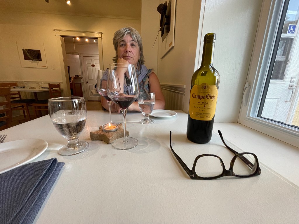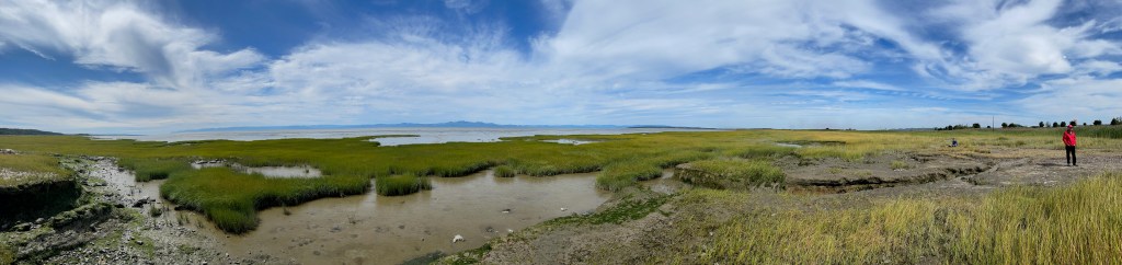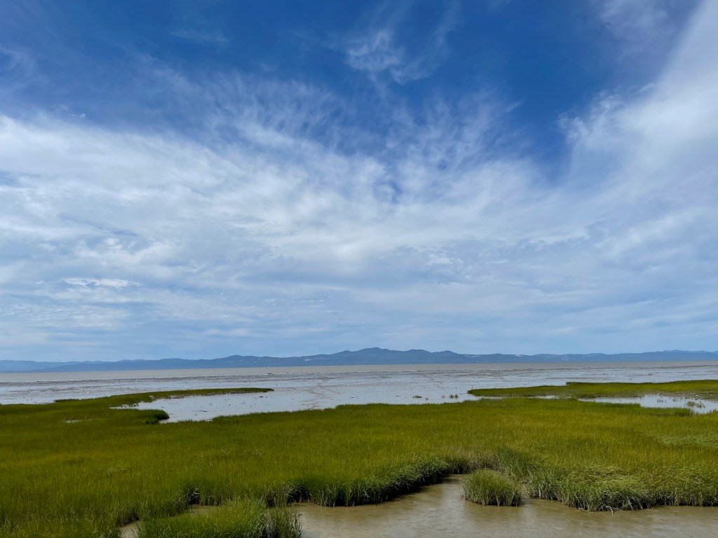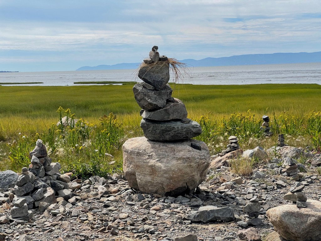 Journée nuageuse avec éclaircies. Lever tôt pour aller à l’espace de co-working en haut de la Méduse, pour Albert. Pour ma part, marche d’environ 1 heure et demie, à partir de la Méduse, Chemin des Marais, Anse -à- Damase, Pied-de-Vent puis retour. Puis, courses : poissonnerie, Jean-Coutu, boucherie, SAQ, Gourmande de nature, puis retour au camping, douche et lecture.