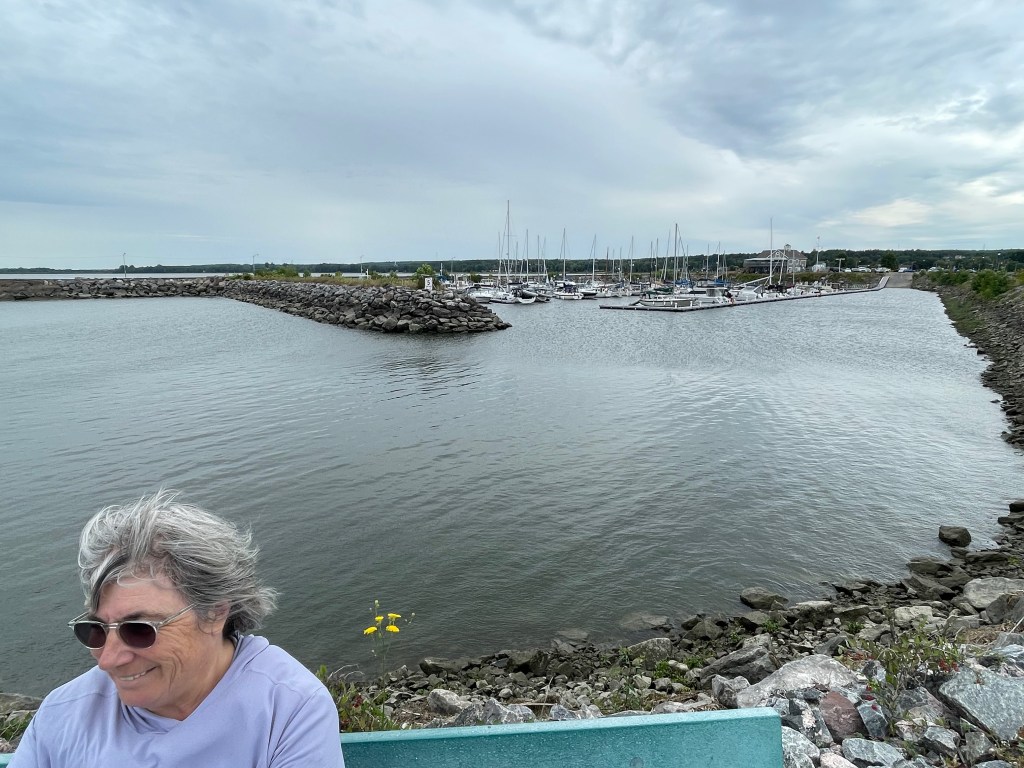 Coucher au camping municipal. Lever vers 8h45, départ vers midi. Route agréable. Un peu de pluie. Beaucoup de trafic. Avons pris le pont de Québec puis la 40. Arrêt à la marina de Portneuf, au bord du fleuve St-Laurent, marche au port. Arrivée à 19h à Montréal, vidé en partie le VR et nous avons mangé du St-Hubert.