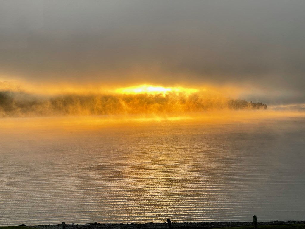 Départ à 10h15. Changement d’itinéraire. On ne va plus dans l’ouest du Canada, on retourne plutôt dans les maritimes. Premier arrêt à Notre-Dame-du-Lac. Très beau camping sur le bord du lac Témiscouata. Beau temps mais frais, près de zéro la nuit… Le matin, réveil à 6h30, lever magnifique. Brume. Soleil sur le lac. Départ vers 10h pour la Nouvelle – Écosse.
