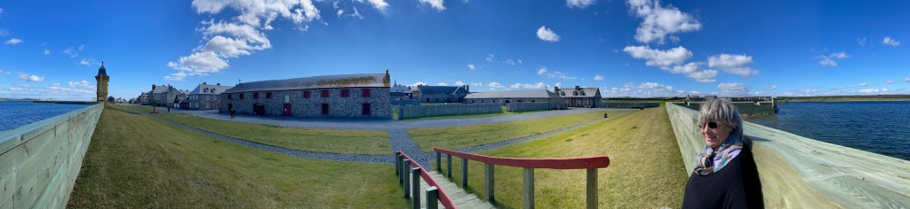Lever tôt. Départ à 9h15 . Arrivée à Louisbourg à partir de l’entrée 2, entrée utilisée en basse saison, elle longe le bord de la mer. Très beau. Journée nuage, puis soleil, le matin et l’après-midi. 10h30, visite guidée en français de l’ensemble de la forteresse – un quart de la forteresse a été reconstruite au début des années 60. Puis visite des maisons et de la forteresse. Puis, arrêt le long de la mer et prise de photos. Puis route du phare et retour au camping vers 18h. Belle journée. Découverte d’une époque tendue entre les anglais et les français ¸dans ce territoire loin de la Nouvelle-France.