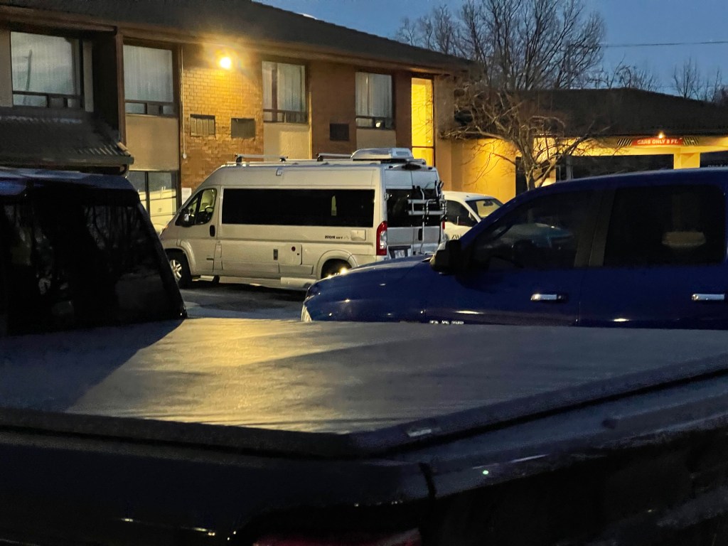 Coucher au Comfort Inn (motel) car la nuit, le gel est possible. Il n’y a pas d’eau dans le VR. Nous avons fait plus de 800KM. Beau temps sur la route. Les camionneurs sont disciplinés. Nous prenons conscience que nous quittons pour deux (2) mois Montréal.