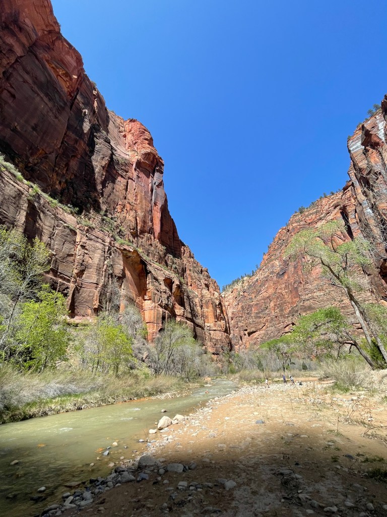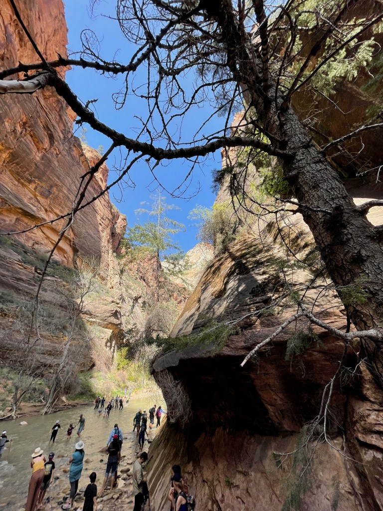 Visite du « Zion National Park ». Nous sommes partis vers 11h pour le parc. Le stationnement du parc était déjà plein. Nous avons trouvé une place à Sprudale. Avons dîner et avons marché jusqu’au centre d’information du parc. Puis, nous avons pris la navette jusqu’au dernier point 9, pour faire la promenade de la rivière. Très belle marche. Très beau canyon. Il y avait du monde mais cela était OK. Puis, retour au camping.