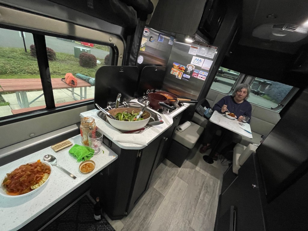 Nous avons quitté le camping vers 10h. La route était sinueuse, des montées et des vallées. Belle route cependant des chauffeurs de camions imprudents, il y en a. Nous sommes arrivés au camping vers 15h, puis nous sommes allés à McMinnville – centre de dégustation des vins de la région. Souper avec des tapas. Très bon.